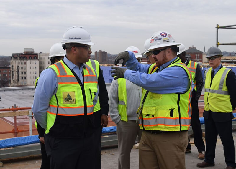 Tại công trường, tầm nhìn của công nhân liên quan đến sự an toàn của họ. Công nhân xây dựng thường mặc quần áo có nhiều màu huỳnh quang, bao gồm cam, vàng hoặc xanh lá cây. Những sản phẩm may mặc này có thể là áo bảo hộ xây dựng, áo sơ mi hoặc áo khoác. Chúng cung cấp một cách dễ dàng để xác định được công nhân và vị trí của họ trong công trường.
