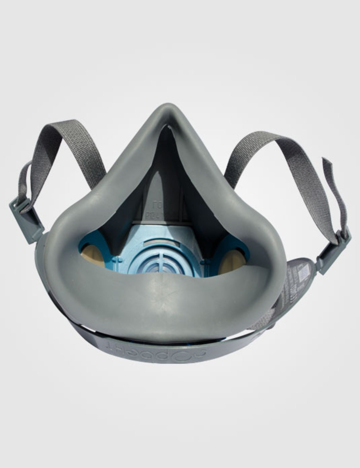 Thiết kế nửa mặt giúp ôm sát sống mũi người đeo, ngăn nhựa cố định giúp mặt nạ ôm khít lấy mũi. Nhờ đó mà ngăn cách tốt giữa một phần của hệ thống hô hấp và môi trường, ngăn chặn khí độc và hóa chất xâm nhập vào hệ thống hô hấp của người đeo khẩu trang.