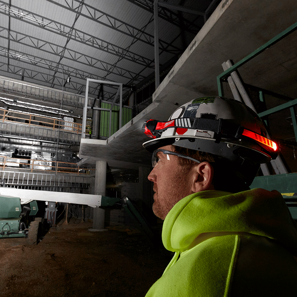 Mũ bảo hộ gắn đèn pin có thể cài đặt biến nó thành đèn hiệu khẩn cấp. Trong trường hợp xấu xảy ra, người lao động có thể sử dụng đèn gắn trên mũ làm tín hiệu cứu hộ giúp nhân viên cứu hộ có nhiều khả năng nhìn thấy ánh sáng rung động hơn.