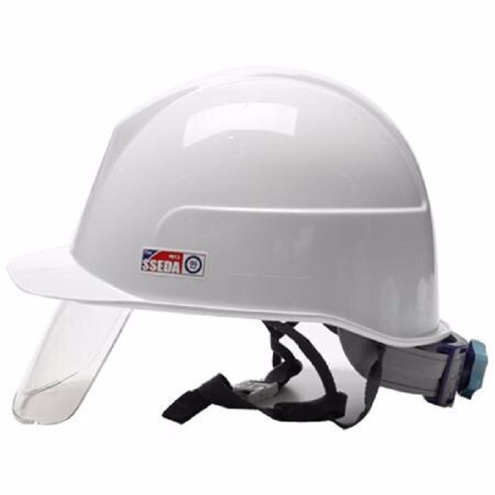 Mũ bảo hộ có kính che mặt được thiết kế tiện dụng và có tính phù hợp với đa số những người lao động. Sản phẩm có lớp vỏ ngoài bằng polythelyn – loại vật liệu bền cứng giúp bảo vệ tối đa các trường hợp va đập, rơi rớt vật dụng từ trên không, đồng thời khả năng chịu lực cao hơn các loại vật liệu nhựa thông thường khác. Dây mũ dệt nylon chắc chắn giúp cân bằng chiếc mũ khi sử dụng tham gia lao động và bền bỉ theo thời gian. Hơn nữa, mũ có nút gài giúp đảm bảo chắc chắn, cố định mũ tốt hơn.