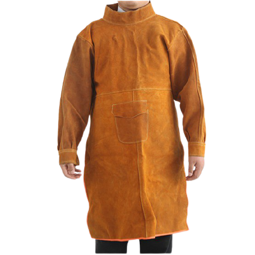Tạp dề da hàn giá rẻ có thể gây vướng víu khi thao tác hàn ở những vị trí trên cao. Do đó, Nếu bạn đang làm công việc ở những nơi này, áo khoác bảo hộ da hàn sẽ giúp bảo vệ tốt hơn cho cánh tay, vai và cơ thể. Tuy nhiên, thiết bị này không bảo vệ chân, vì vậy người thợ hàn cần bổ sung thêm quần dài để bảo vệ tuyệt đối.