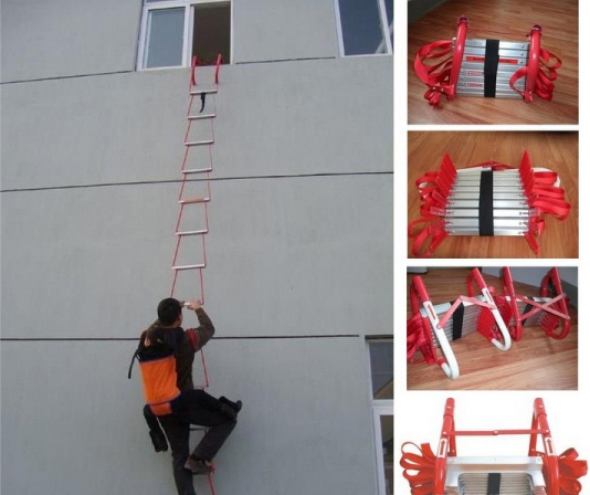 Thang dây chống cháy có nhiều loại được chia theo kích thước, dễ dàng gấp gọn khi không sử dụng. Cách sử dụng đơn giản, bạn chỉ cần móc hai đầu thang vào vị trí cố định, chắc chắn như lan can, cửa sổ. Sau đó thả thang ra phía ngoài, tránh để vào các vật cản và đường dây diện rồi từ từ leo xuống mặt đất an toàn.